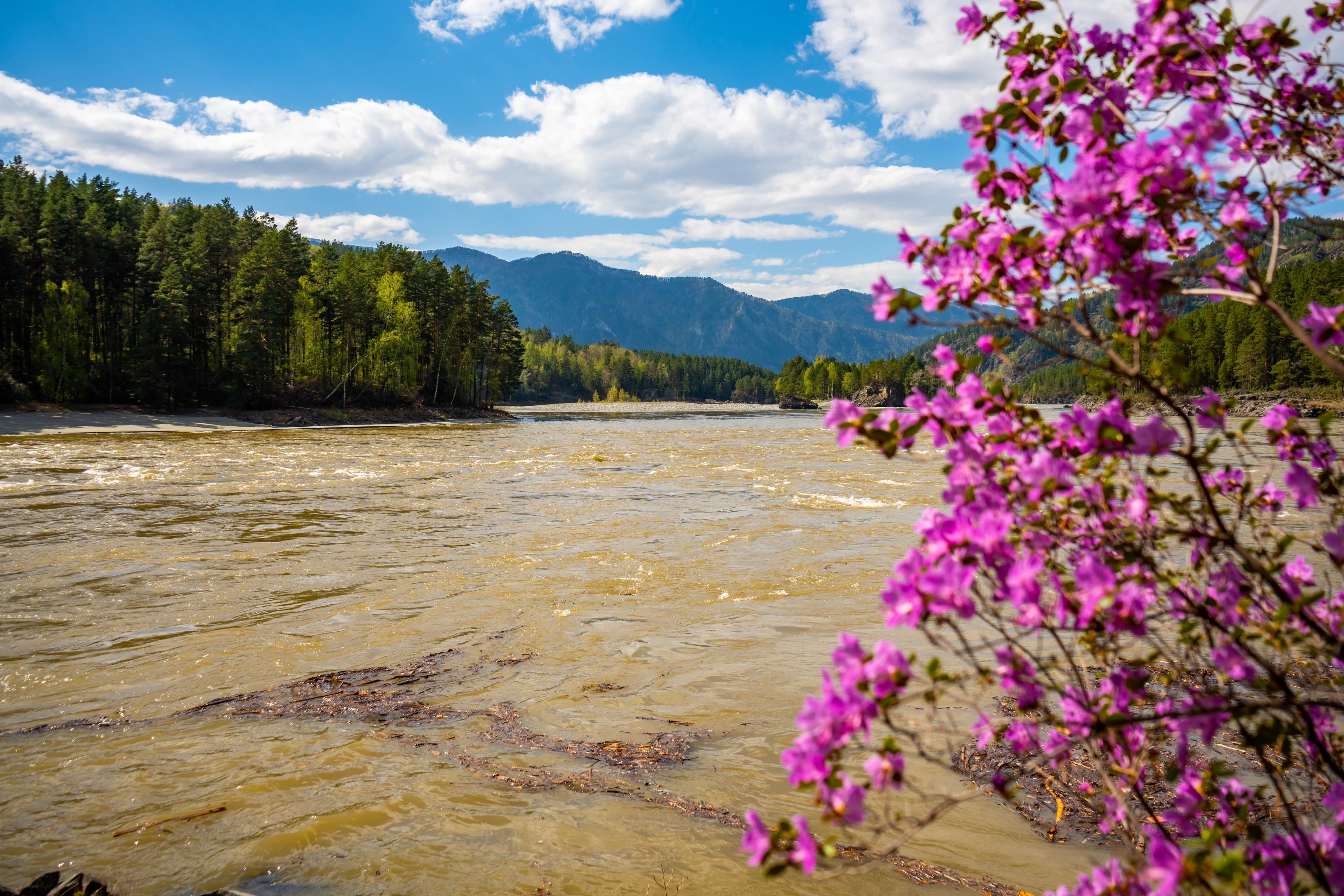 На Алтай лучше все таки ехать в мае. В марте здесь прохладно: днём около 0…+5 °C, ночью возможен минус. А вот конец апреля и май — то самое золотое время, ради которого сюда едут фотографы и любители гор. Температура поднимается до +15…+20 °C, и начинается главное событие — цветение маральника. Склоны гор покрываются розово-лиловыми пятнами, и кажется, будто кто-то прошёлся по хребтам акварельной кистью.