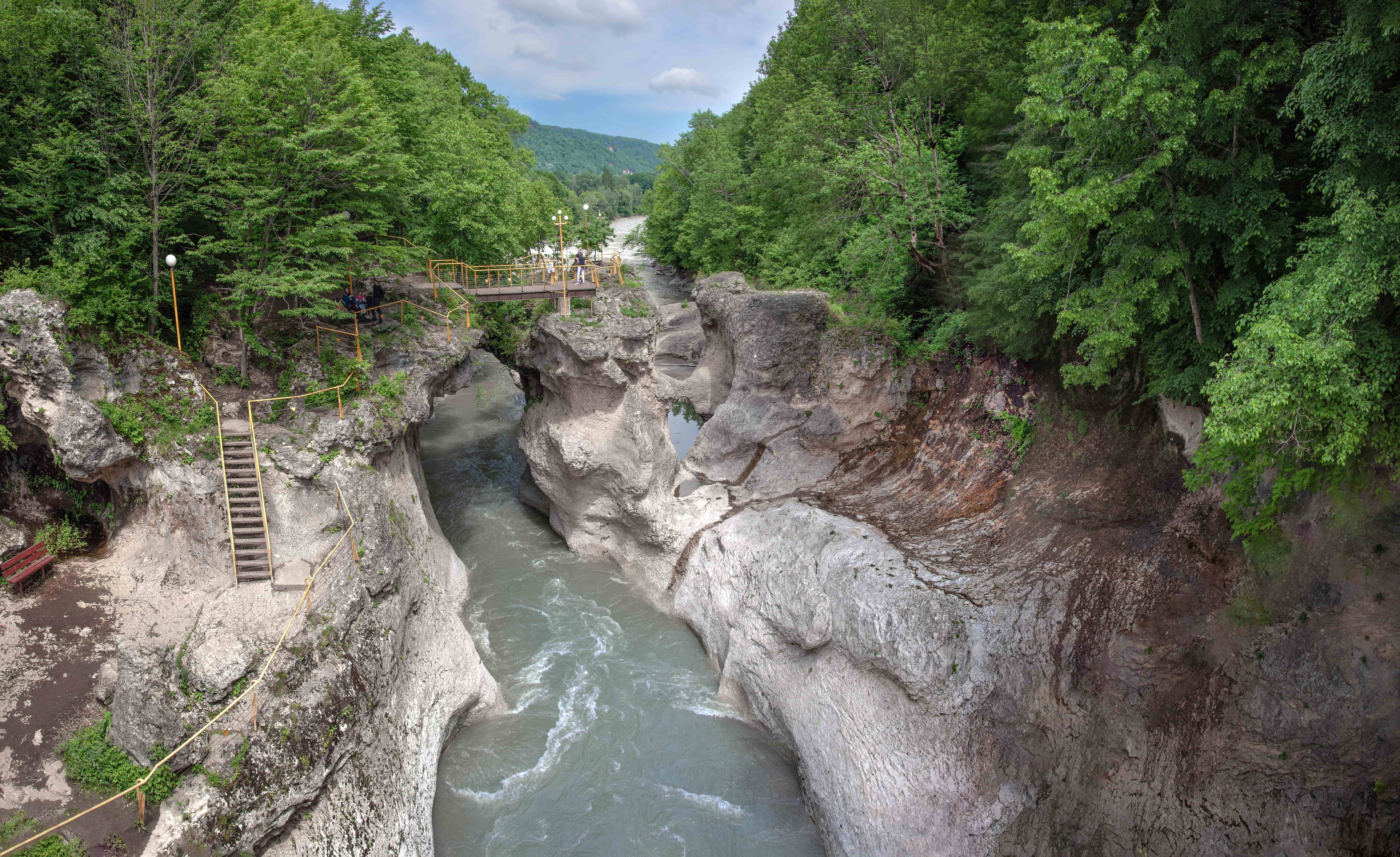 А вот за пределами Даховской вас ждут полноводные и шумные водопады Руфабго, Хаджохская теснина, плато Лаго-Наки, высокогорное озеро Псенодах, 4-километровый Гранитный каньон, Большая Азишская пещера со сталактитами и сталагмитами, ущелье Мишоко и окаменевшие останки аммонитов на берегах реки Белой.